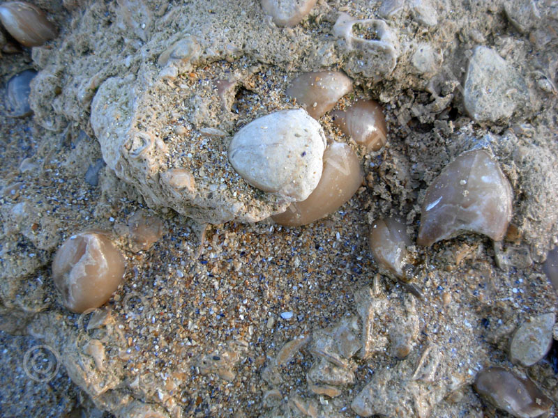 Brachiopodes fossiles (Digonella digona) - Plage des falaises des Confessionnaux